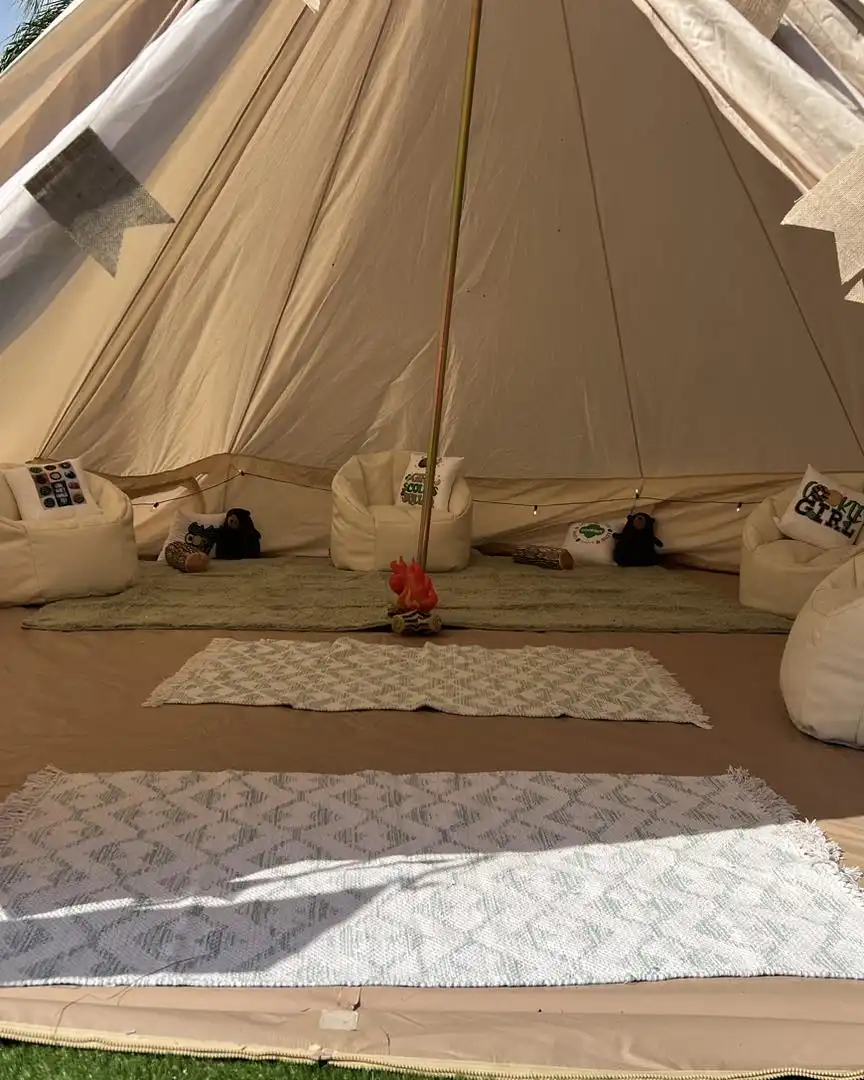 Transform your space into a haven for budding explorers and creative minds. Pitch a tent (or drape blankets over chairs for a fort-like effect) and decorate with nature-inspired elements like pinecones, leaves, and colorful streamers. Don’t forget to create a designated campfire area (complete with battery-operated flameless candles for safety) for storytelling and singalongs.